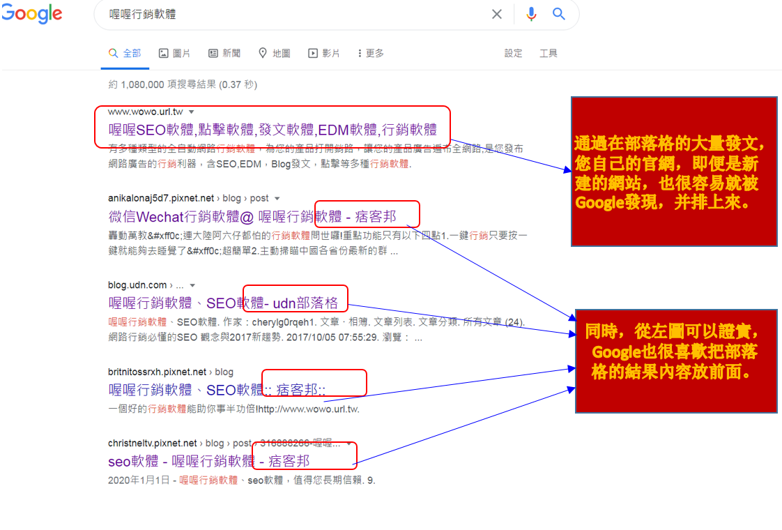 SEO外連行銷軟體的原理是:通過全自動在部落格發外連文(不需要您有部落格,軟體會全自動創建上千個),提升自己公司官方網站和產品在互聯網上的曝光量,進而輕松提高公司官方網站或所需關鍵字在Yahoo, google 上的排名!