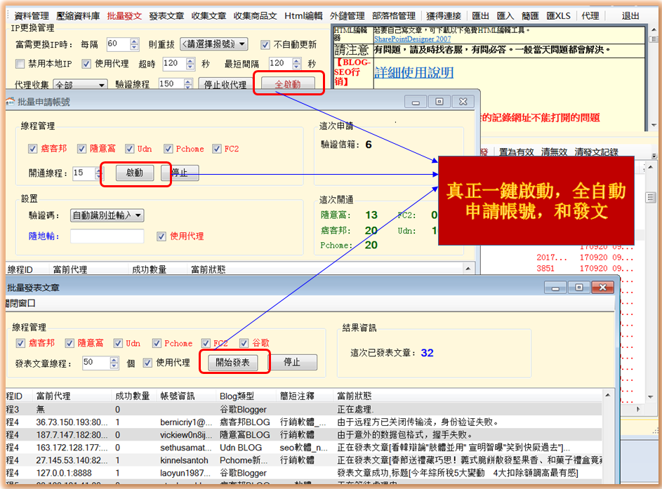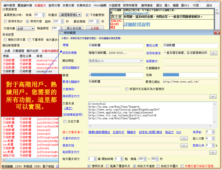 優勢4:可同時管理幾百上千個BLOG帳號.