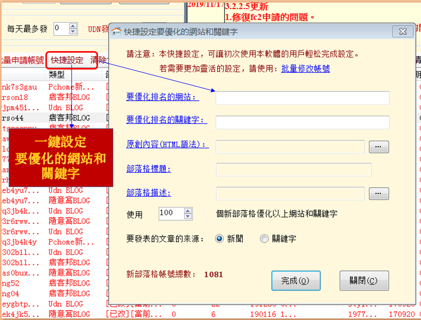 本軟體可以全自動申請Pixnet、Udn、WordPress、Google